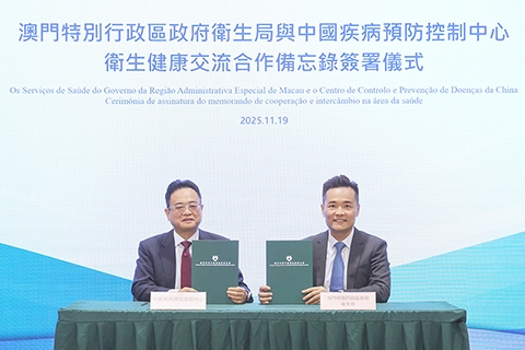 【特訊】衛生局羅奕龍局長、疾病預防控制中心梁亦好主任及公共衛生化驗所呂綺玲主任等,本月十九日與中國疾病預防控制中心王健偉主任率領的代表團舉行座談會,雙方簽署了《衛生健康交流合作備忘錄》,進一步加強在傳染病防控、慢性病綜合防控及公共衛生領域的合作。 在座談會上,羅奕龍局長首先感謝國家衛生健康委員會、…