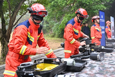 ◎ 十一月二十五日,重慶應急救援隊員展…