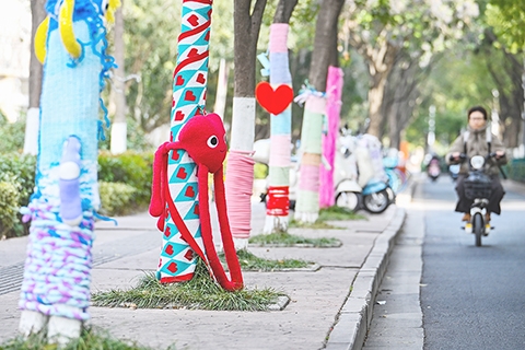 南京街頭樹「穿」毛衣