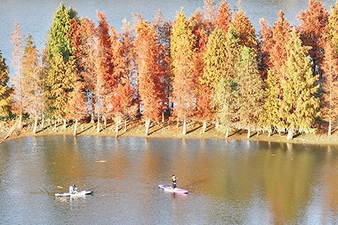 ◎ 一月十九日,福州江濱水杉林旁,槳板…
