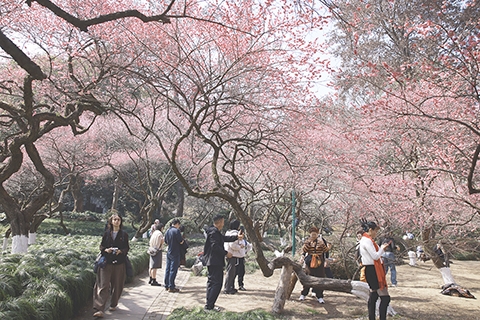 ◎ 二月十五日,民眾在梅林中穿梭。近日…