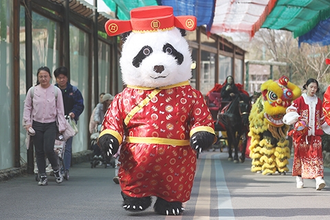 ◎ 二月十五日,江蘇南京,熊貓人偶在紫…