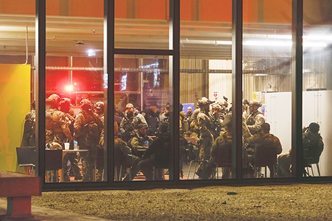 ◎ 十二月十七日,數百名無家可歸者和其他需要救助的人在美國紐約曼哈頓的一個救助點排起長隊,在暮色中等待領取一份免費晚餐。圖為當日,在美國紐約曼哈頓的一處救助點,人們排隊等待領取免費晚餐。(新華社記者 張鳳國 攝)