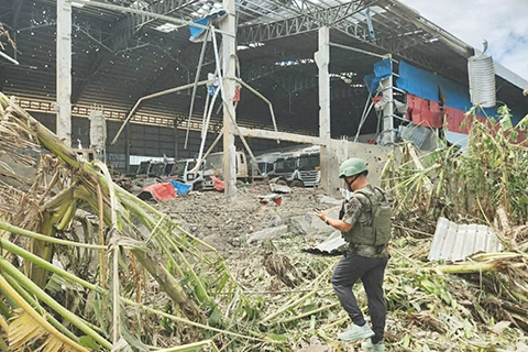 ◎ 柬埔寨內政部發言人杜索卡十二月十八日在新聞發佈會上說,截至十七日下午六時,新一輪柬泰衝突中喪生的柬埔寨平民總數已達十八人,受傷人數升至七十八人。圖為當日在柬埔寨班迭棉吉省拍攝的一處被泰國軍隊轟炸的民用設施。(新華社/柬新社)