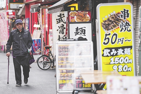 ◎ 日本總務省2月20日公佈的數據顯示,今年1月日本剔除生鮮食品後的核心消費價格指數(CPI)同比上漲2.0%至112.0,連續53個月同比上升。圖為當日,在日本東京,行人經過一家餐廳門口。( 新華社記者賈浩成攝)