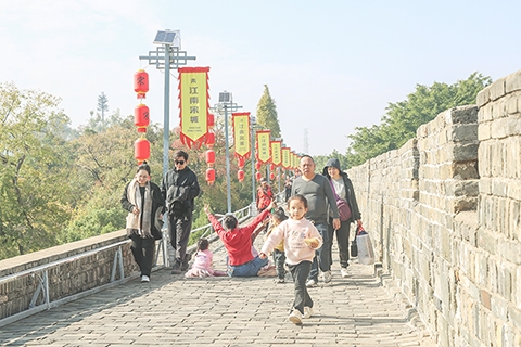 民眾在宋代古城牆上散步