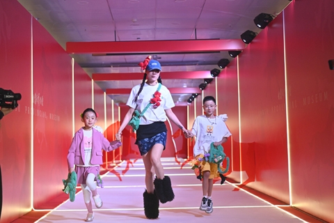 ◎ 一月二十六日晚,甘肅省博物館「馬力全開」博物館啟航夜活動在蘭州市舉行。活動通過「主題晚會+夜探博物館」的創新模式,讓千年絲路文物與現代潮流激情碰撞,讓文物在馬年新春煥發新潮活力。圖為模特展示各類文創產品。(中新社記者九美旦增 攝)