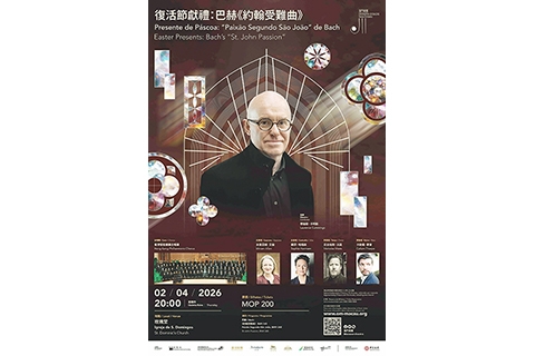 澳門樂團2025-26樂季演出之「復活節獻禮:巴赫《約翰受難曲》」,將於4月2日(周四)晚上8時在世遺建築玫瑰堂舉行。樂團將與英國著名巴洛克指揮家勞倫斯卡明斯(Laurence Cummings)、多位歐洲著名古樂歌唱家及香港管弦樂團合唱團聯手,呈獻「音樂之父」巴赫的代表作之一《約翰受難…