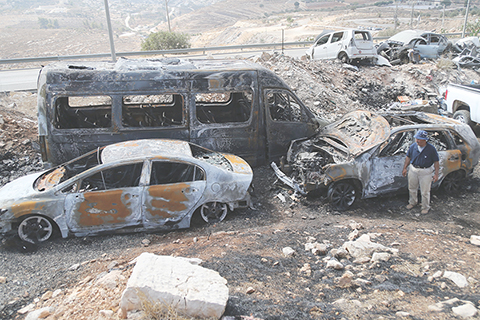 約旦河西岸:被燒燬的車輛 2025-10-22 03:30:00 ◎ 十月十九日,一批屬於巴勒斯坦人的車輛在約旦河西岸城市伯利恆附近被以色列定居者燒燬。圖為當天,一名巴勒斯坦男子檢查被以色列定居者燒燬的車輛。(新華社發 馬蒙.沃茲沃茲 攝)