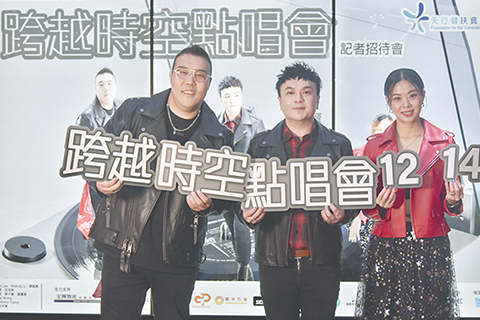 「天行健扶貧助弱會」《跨越時空點唱會》慈善演唱會日前舉行記者會公布演唱會詳情。演出歌手沈宗賢、劉洋、阮慧珊,以及演唱會兩位導演呂冠南及布耀輝更親臨現場,為天行健是次籌款項目出力,勉勵社會推動共融,支持殘疾人士追夢。