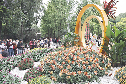 成都人民公園賞菊活動吸引民眾 2025-10-27 03:30:00 ◎ 十月二十六日,四川成都,盛開的菊花吸引民眾拍攝觀賞。二零二五年成都人民公園賞菊活動展出了七百多個品種、十萬餘盆菊花,吸引市民和遊客。(中新社記者 王磊 攝)