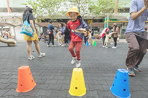 下午時段舉行嘉年華,邀請了澳門工聯筷子基家庭及社區綜合服務中心-李翠芬主任向各參與運動會的家庭致送紀念品,以嘉許及鼓勵親子間可於日常生活中持續實踐,培養正向親子關係。李翠芬主任更表示中心於2019年增設「籽樂工房」親子感統館,館內定期舉辦不同七感主題相關的家長講座與親子活動,致力推動市民認識及了解更多感覺統合對孩子未來成長的重要性。嘉年華當中設有不同攤位遊戲、籽樂工房體驗、車車玩樂區及感統體驗區,供0-6歲親子共同體驗與參與,從中認識有關「七感」中的內容,推動更多家長重視與關注感覺統合對幼兒發展的重要性。