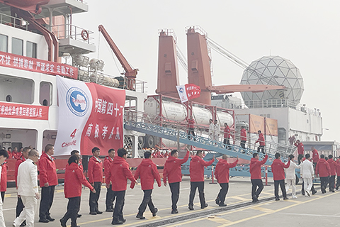 ◎ 十一月一日,由自然資源部組織的中國第四十二次南極考察隊出征。(中新社記者阮煜琳 攝)