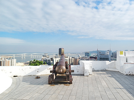 松山炮台曾是軍事基地,炮台上建有聖母雪地殿教堂和東望洋燈塔,位處高地當然還有其他軍事設施。