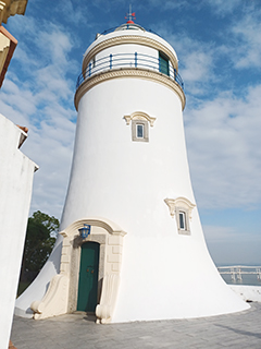 15米高的燈塔從外觀已知它分成三層,遊客雖多,但燈塔仍是重門深鎖,遊客只能在戶外拍照,此處位於高地,有自然的美麗景色拍攝,而我帶着遺憾地飽覽當下的澳門美景。看着白色燈塔再從網上收集燈塔的圖片,知道燈塔內有迴旋梯連接垂直的空間,此梯可直上塔頂,燈塔頂設置巨型射燈,東望洋燈塔是中國海岸第一座現代燈塔,其所處經緯亦為澳門在世界上的地理座標。
