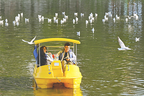 立冬節氣 昆明天氣晴好 2025-11-08 03:31:00 ◎ 十一月七日,市民乘船享受暖陽。當日為二十四節氣的「立冬」,雲南省昆明市天氣晴朗,溫度宜人,眾多市民和遊客來到戶外,享受「春城」暖陽。(中新社)