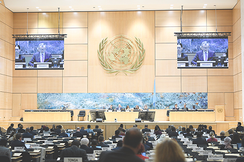 美國缺席對美人權審議 聯合國敦促美國恢複合作 2025-11-09 03:30:00 ◎ 圖為十一月七日在瑞士日內瓦萬國宮拍攝的聯合國人權理事會普遍定期審議工作組第五十屆會議現場。當日,聯合國人權理事會原定對美國進行第四輪國別人權審議,但美國代表拒絕出席相關會議,導致本輪審議未能正常進行。人權理事會當天通過一項決定,敦促美國恢復與國別人權審議機制合作。(新華社記者 連漪 攝)