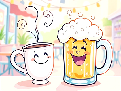 一天之內,被兩類特殊「群體」的生活習性給驚訝了,筆者的時事觸覺真太低。但當我細心思考之後,發現日間飲酒而晚上飲咖啡,這類看似「不正常」的舉動,還是完全符合生活邏輯的。日出而作,我們為了生活而工作,但並不是所有人都能幸運地找到一份自己喜愛的工作。我認為工作時要認真,但不一定要百分百用生命投入,反正上司總有大量挖苦你的點子;借一點兒的酒精去麻醉,麻醉那個痛苦中掙扎的自己,才可在上班時間內「交足功課」。至於下班後的夜晚,我們終於可以解放被工作束縛的靈魂,隨心所欲,做回自己,做回那個真正的自己。這時候來一杯咖啡精神一下,認真且百分百投入生活當中,做自己喜歡的事,享受生活,尊重生活,好像一切也挺說得過去。
