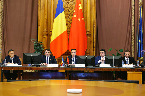 ◎ 「二零二五中國-羅馬尼亞商業論壇」十一月十四日在羅馬尼亞議會宮舉行,兩國近二百名政商界人士參會。論壇旨在加強雙邊貿易和投資領域對話,拓展經貿合作機遇。圖為當日,在羅馬尼亞布加勒斯特,羅馬尼亞議會對華友好小組主席科倫戴亞(左二)、中國駐羅馬尼亞大使陳峰(中)、羅馬尼亞人團結聯盟黨主席西米翁(右二)、中國駐羅馬尼亞大使館經濟商務參贊宋先茂(左一)、羅馬尼亞議會議員加布里埃爾·弗洛雷亞(右一)出席「二零二五中國-羅馬尼亞商業論壇」。(新華社發 克里斯泰爾 攝)