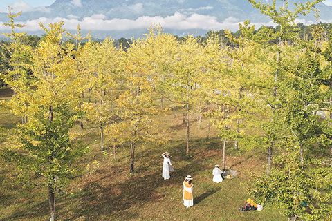 ◎ 十一月十四日,遊人在湖南省永州市雙牌縣茶林鎮桐子坳村古銀杏林賞景遊玩(無人機照片)。(新華社發 周秀魚春攝)