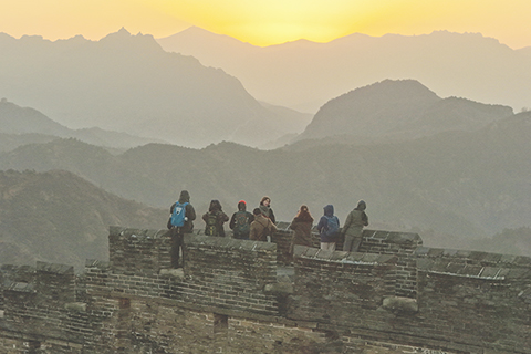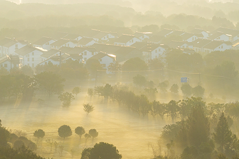 ◎ 十一月十五日,遊人在貴州省開陽縣高寨苗族布依族鄉牌坊村欣賞晨景(無人機照片)。(新華社發 袁福洪 攝)