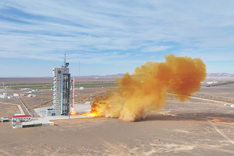 發射升空 2025-11-20 03:31:00 ◎ 十一月十九日十二時零一分,中國在酒泉衛星發射中心使用長征二號丙運載火箭,成功將實踐三十號A、B、C星發射升空,衛星順利進入預定軌道,發射任務獲得圓滿成功。該衛星主要用於空間環境探測及相關技術驗證。此次任務是長征系列運載火箭的第六百零八次飛行。(無人機照片)(中新社發 汪江波 攝)