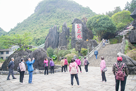 遊客遊覽廣西賀州玉石林景區