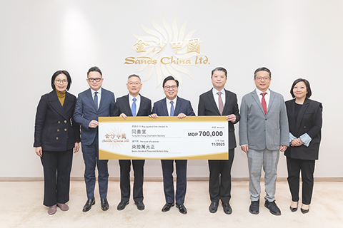 【又訊】金沙中國有限公司於十一月二十日在澳門威尼斯人舉行支票捐贈儀式,向澳門同善堂捐贈澳門幣七十萬元,連續二十二年響應該社服機構的年度「沿門勸捐」籌款活動,全力支持同善堂各項慈善服務推展。