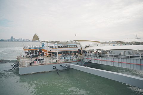 ◎ 十一月二十日上午,眾多台胞通過廈金「小三通」客運航線抵達廈門。(中新社記者李思源 攝)