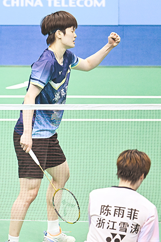 羽毛球混雙決賽,浙江隊代表鄭思維、黃雅琼對陣湖南隊周志宏、魏雅欣,分別以21:11及21:12,大比分2:0奪冠,僅用35分鐘鎖定勝局。