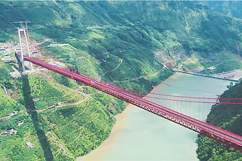 《大國建造》第一集名為《極限挑戰》:金安金沙江大橋,主跨1386米,全球跨徑最大的山區鋼桁樑懸索橋。抗風是這座大橋最關鍵的技術。縱橫全橋的八字形展翅抗風穩定板,可以改變大風走向,分流風力強度,將大風對橋樑的橫向作用力降低到最小。陽寶山特大橋,貴州省第一座六車道山區懸索橋。建設者們迎來最艱險的高空作業──鋼樑吊裝。