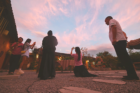 ◎ 遊客在柳州市柳江區拉堡鎮思賢村「拾光小院」休閒(十二月一日攝)。