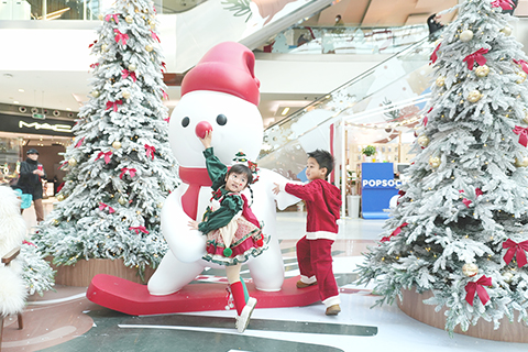 ◎ 十二月九日,小朋友在北京薈聚感受冬日氛圍。近日,北京薈聚「森光綺遇季」冬日主題活動啟幕。活動在全場打造六大主題互動點位,營造出北歐風情的冬日氛圍。(中新社)