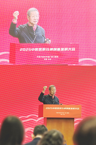 ◎ 十二月十三日,中國科學院院士陳潤生在大會上發言。當日,由中國中醫科學院廣安門醫院主辦的二0二五中醫醫院傳承創新大會在北京開幕。本次大會以「行穩致遠奮楫前行」為主題,就中醫藥的傳承與發展開展專題報告及研討,解讀醫院高質量發展政策、破解行業共性難題,為中醫藥行業發展搭建交流平台,促進資源共享,以此慶祝中國中醫科學院廣安門醫院建院七十周年。(新華社記者邢廣利 攝)