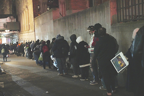 美國紐約:暮色中的等待 2025-12-19 03:30:00 ◎ 十二月十七日,數百名無家可歸者和其他需要救助的人在美國紐約曼哈頓的一個救助點排起長隊,在暮色中等待領取一份免費晚餐。圖為當日,在美國紐約曼哈頓的一處救助點,人們排隊等待領取免費晚餐。(新華社記者 張鳳國 攝)