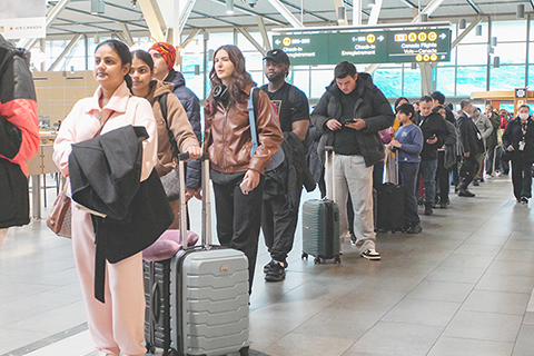 溫哥華國際機場假日出行繁忙 2025-12-20 03:30:00 ◎ 隨著當地冬季假日出行季的到來,加拿大溫哥華國際機場客運繁忙,十二月十八日的旅客量超過七點六八萬人次。圖為當日,旅客在加拿大溫哥華國際機場排隊等待通過安檢通道。(新華社 發梁森 攝)