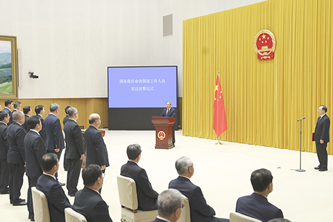 國務院舉行憲法宣誓儀式 李強監誓 高空清潔機器人 報告預計今年中國鋼材消費量 為8.08億噸同比降5.4% 前11月中國社會消費品 零售總額增百分四 中國擬規定危化品道路運輸企業 對運輸車輛實時監控 海南自貿港封關首日 零關稅貨值3.6億元人民幣 台北捷運發生一男子持刀隨機攻擊路人後從高處墮落亡 已造成四死八傷一命危 四川水電裝機規模 突破一億千瓦創新紀錄 廣州實現跨境電商常態化運行 「離境即退稅、銷售再核算」 糖含量等將列入 中國包裝食品標簽 主毒株為甲型H3N2亞型 中國流感仍處高水平 深圳灣超級總部基地C塔項目主體結構封頂 海關「新十八條」落地前海 改革賦能跨境要素流通 中國兩部門發文明確在政府採購中 實施本國產品標準及相關政策 中國兩部門處置一批 炮製謠言及非法薦股賬號 李強主持召開國務院常務會議 堅決防範和遏制重特大事故發生 中國擬立法完善國家規劃體系 妥處各級各類規劃之間關係 北京出新政促高質量充份就業 中國制定新規助經營者 釐清依法競爭邊界 強化旅客權益與低空經濟規範 中國民用航空法將三審 國務院舉行憲法宣誓儀式 李強監誓 2025-12-20 03:31:00 ◎ 十二月十九日,國務院舉行憲法宣誓儀式。國務院總理李強監誓。(新華社記者 黃敬文 攝)