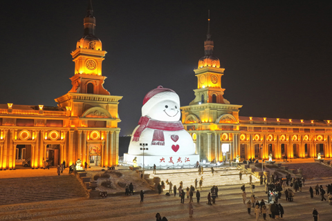 哈爾濱「網紅大雪人」點亮冬夜 2025-12-24 03:30:00 ◎ 十二月二十三日,隨著夜幕降臨,哈爾濱市道里區音樂公園的「網紅大雪人」在燈光的映襯下更顯可愛,其憑藉經典的紅帽、紅圍巾與愛心紐扣造型,成為遊客熱門打卡點。圖為夜幕下的大雪人吸引遊客打卡。(無人機照片)(中新社)