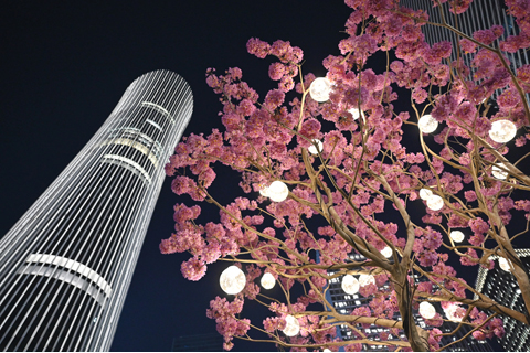 ◎ 十二月二十三日,廣東省深圳市,深圳灣萬象城附近的紫花風鈴木盛放。(中新社)