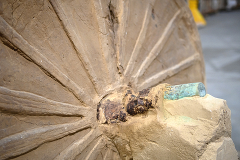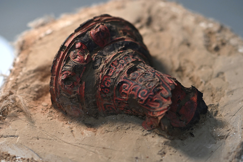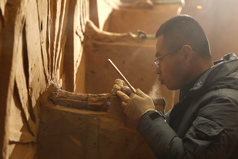 在位於陜西榆林清澗縣的寨溝遺址考古隊文物修復室中,陜西省考古研究院館員于有光和同事們忙著整理文物。「寨溝遺址最有特色的出土文物是我們發現的四十餘輛墓內葬車,此外還有漆器、骨器等殷墟風格明顯的隨葬品。」于有光說,「這些文物均出自『甲』字形大墓中。在寨溝遺址,我們發現了十多座此類高等級貴族大墓。」