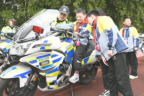 -- 2026-01-08 03:30:00 ◎ 一月七日,在第六個中國人民警察節暨第四十個「110宣傳日」來臨之際,重慶市公安局舉行了警營開放日暨「四十載守護平安110勇毅前行」主題宣傳活動。活動現場,警務戰術演練、公安工作成果展、警營實景體驗互動、新型警用裝備展示等吸引參觀者參觀體驗。圖為活動現場,警用摩托車吸引小學生近距離體驗。(中新社記者 周毅 攝)