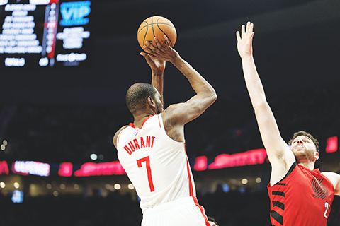 【中央社波特蘭9日綜合外電報道】美國職籃NBA休士頓火箭今天晚間以105比111不敵波特蘭拓荒者,但當家球星杜蘭特在第3節命中一顆三分球,讓他一舉超越傳奇球星張伯倫,升上NBA生涯總得分榜第7位。
