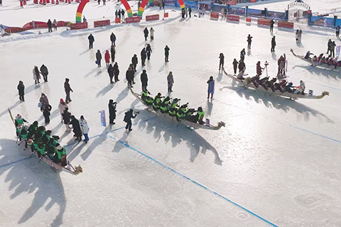 冰上龍舟賽在松花江上舉行