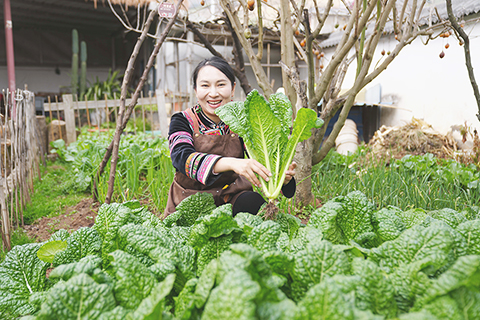 ◎ 樂居村是雲南省昆明市西山區彝族、白族、漢族等多民族聚居的傳統村落,距今已有六百多年歷史。期麗是當地土生土長的白族人,從城市回歸鄉村後成為樂居村的家鄉推薦官,依託自家農家樂,她通過短視頻記錄鄉村日常,向外界推介樂居村,並以導覽講解、民俗體驗和鄉村美食為載體,帶領遊客感受鄉村生活,「希望通過自己的鏡頭,讓更多人能看到美麗家鄉。」期麗說。近年來,隨著民宿、麵包工坊、咖啡館等新業態不斷落地,遊客逐漸增多,樂居村從曾經的「空心村」邁入農文旅融合發展的新階段。圖為一月十一日,期麗拍視頻展示菜地裡的新鮮蔬菜。(中新社記者 劉冉陽 攝)