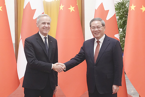 【中新社北京一月十五日電】中國國務院總理李強一月十五日下午在北京人民大會堂同來華進行正式訪問的加拿大總理卡尼舉行會談。