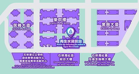 即日起,當局駐足社區一連三個月在石排灣和澳門大學設立「再生水資訊站」,為居民提供就近、貼心、面對面的服務。無論是應用用途、水質標準、安全檢測、管道檢查,還是繳費方式,透過站內的水管展示、互動裝置、宣傳短片,為市民提供豐富資訊,特定時間還有專人現場解答居民疑問,以及再生水攤位遊戲。現時陸續透過多元化的宣傳渠道推廣再生水資訊,包括再生水網上專頁、水費單、電視廣告、巴士廣告、網上廣告、海報等,並且透過相關部門和物管公司,將再生水小冊子送到家家戶戶,務求令居民了解再生水的常識和供水安排,明白到再生水是既安全又慳水。