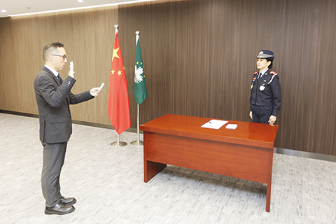 【特訊】根據保安司司長批示,自2026年1月21日起,委任蔡永興為澳門保安部隊事務局行政管理廳廳長。就職儀式於2026年1月21日在澳門保安部隊事務局舉行,由局長劉運嫦警務總監主持,並在副局長鄺逸富副消防總監、陳曉副警務總監及部門主管的見證下,蔡永興廳長宣誓就任。