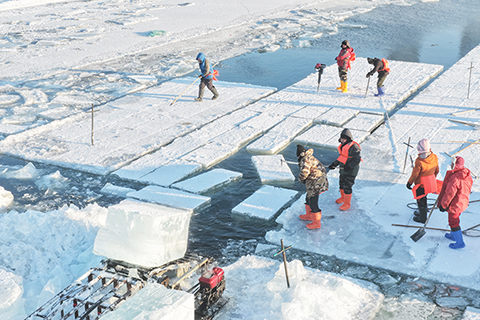 第二十八屆哈爾濱冰雪大世界存冰開採火熱進行