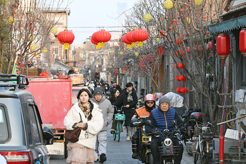 北京街頭節日氣氛漸濃 遊客打卡楊梅竹斜街 浙江杭州:馬年裝置「花式」迎新春 青海新能源裝機佔比超73%位居中國第一 江西實施億元以上大中型項目 「十四五」時期1.3萬餘個 人社部:三項社保基金累計結餘10.2萬億元 二零二六年全國兩會歡迎中外記者採訪 中方斥高市早苗涉台言論 日方沒有任何資格對中國台灣置喙 中科院武漢病毒研究所 發現對尼帕病毒有效藥物 不敢腐不能腐不想腐 李強:加大一體推進力度 北京街頭節日氣氛漸濃 遊客打卡楊梅竹斜街 2026-01-28 03:31:00 ◎ 1月27日,遊客在楊梅竹斜街遊覽。春節臨近,北京街頭節日氣氛漸濃。(中新社記者 田雨昊 攝)