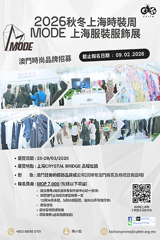 【特訊】為推動澳門時尚行業發展,助力業界開拓市場,澳門生產力暨科技轉移中心(下稱「生產力中心」)將於二零二六秋冬上海時裝周─MODE上海服裝服飾展設立「澳門館」,現正公開招募本澳時尚品牌參展,歡迎符合資格的品牌申請。
